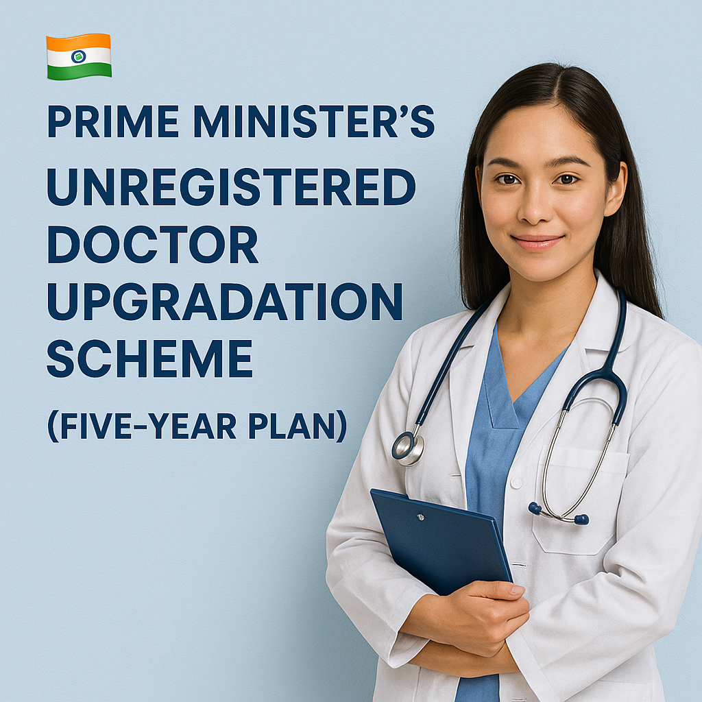 know MorePresented with Special Contribution by ARYAVAT SOCIAL WELFARE FOUNDATION The Prime Minister’s Unregistered Doctor Upgradation Scheme is a visionary five-year program by the Government of India to tackle the shortage of qualified medical professionals, especially in rural areas.